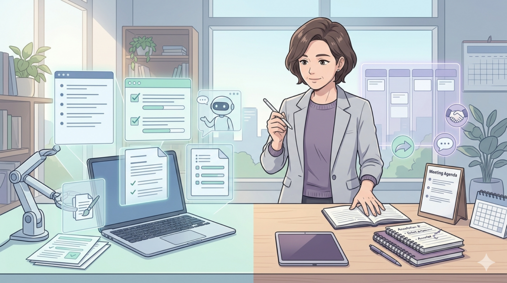 一部の対応サービスでは、予定管理の補助、メールの下書き、情報の要約、資料作成の支援などをまとめて行えるようになってきました。重要なのは、「AIが何でも自動でやってくれる」ことではなく、人が判断しやすい形まで下ごしらえしてくれることです。
