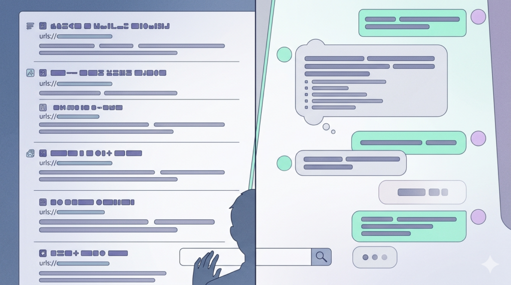 一方のAI検索は、複数の情報源をもとに、要点をまとめた回答を提示するのが特徴です。ページ一覧を一つずつ追う手間を減らしやすい反面、回答をそのまま鵜呑みにしない姿勢も必要です。