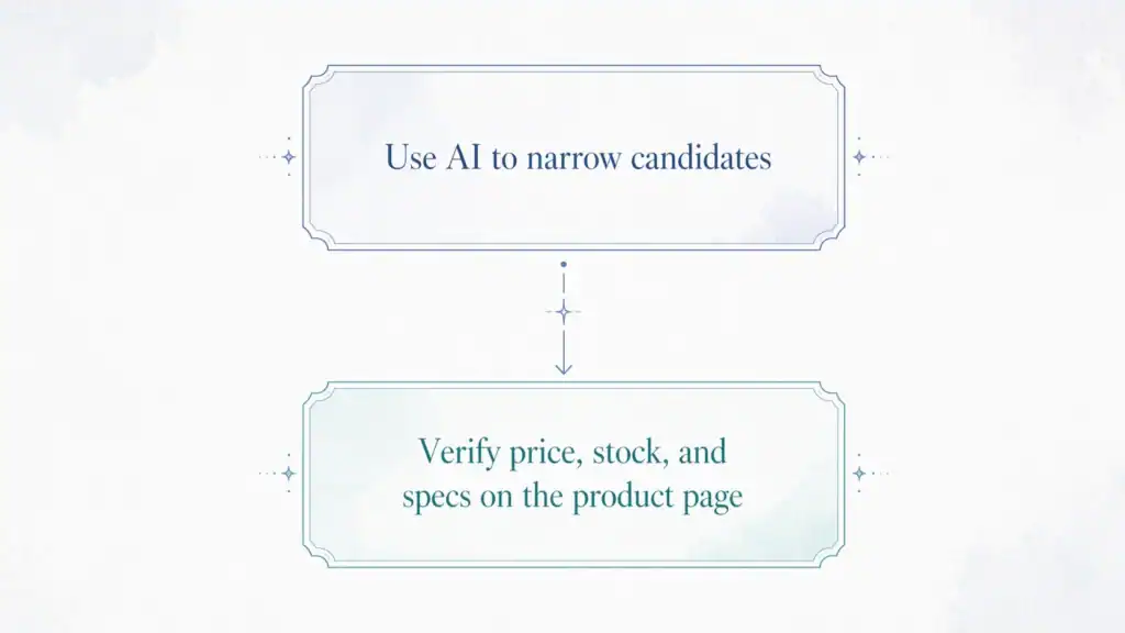 迷ったら「ChatGPTで候補整理 → 販売ページで価格・在庫・仕様を確認」の2ステップが失敗しにくい流れです。