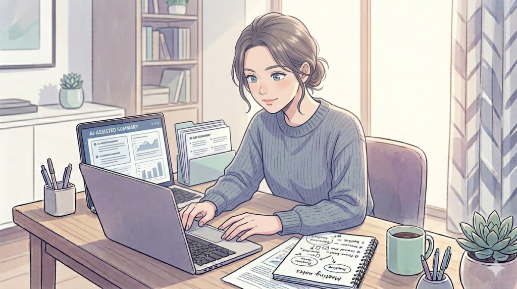 要約後に自分でひと読みして、論点の抜けがないかを確かめる習慣があれば、AI要約は実務でもかなり使いやすくなります。