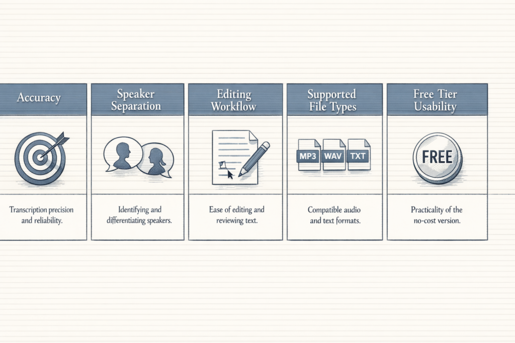AI文字起こしツールは、精度だけでなく、話者分離、編集性、無料枠の条件で実用性が大きく変わります。