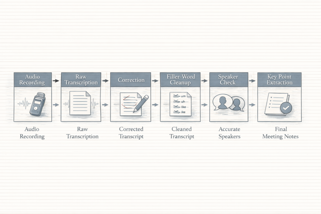 文字起こしが終わっても、そのまま実務で使えることは多くありません。実際には次の整え作業が必要です。