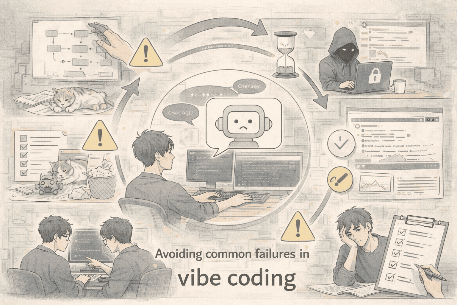 この記事は、バイブコーディングを始めたばかりの方や、一度試したがうまくいかなかった方に向けて、よくあるつまずきのパターンとその対処方法を整理したものです。