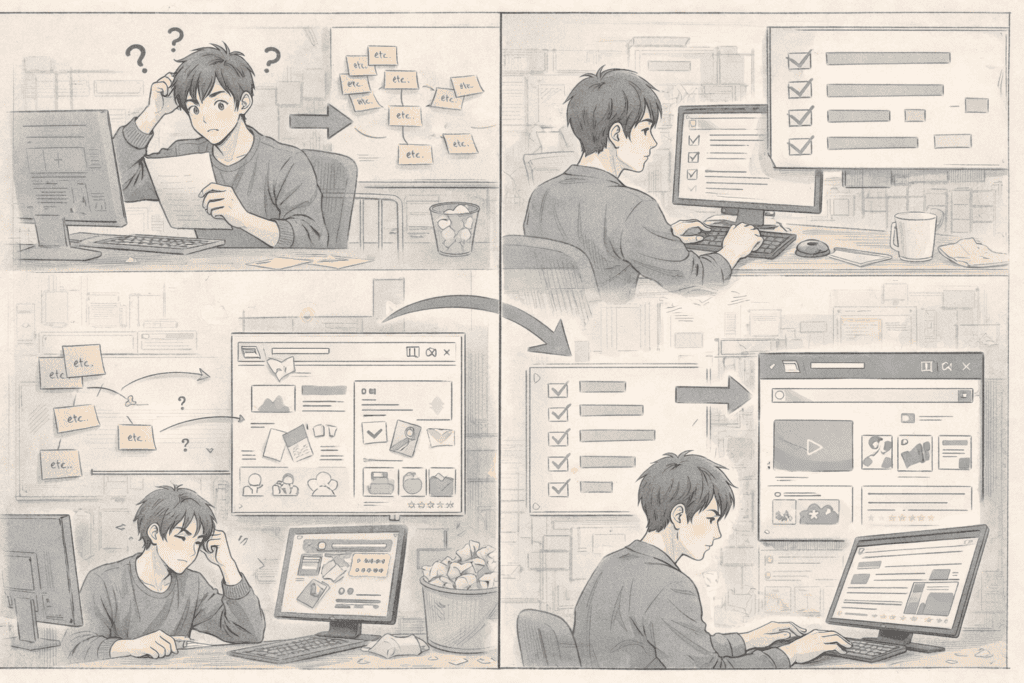 コードを書き始める前に、「何を作るか」が固まっていないと、途中で方向性がぶれます。AIはその時点の指示には従いますが、要件変更の意図や優先順位まで自動で一貫管理してくれるわけではありません。「やっぱり別の方法で」と何度も変更すると、コードが複雑になり、後から直しにくくなります。