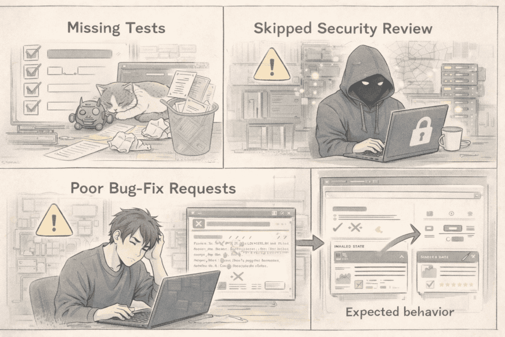 バイブコーディングでは、AIに頼み続けることができてしまうため、「この機能は本当に今必要か」「コードが複雑になりすぎていないか」という判断が後回しになりがちです。気づくと、誰も理解していないコードが積み重なった状態になっていることもあります。