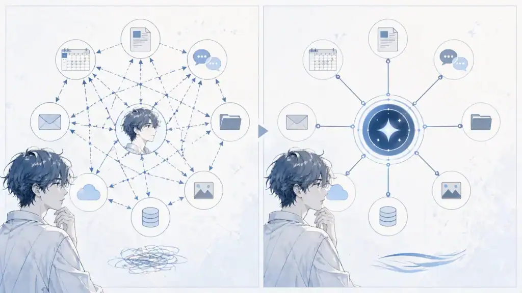 この記事は、AIツールに興味はあるけれどMCPがまだピンとこない方に向けて書いています。開発者向けの解説ではなく、「AIが自分のカレンダーや資料を見ながら動いてくれる、あの仕組みの名前がMCPです」という角度で整理します。
